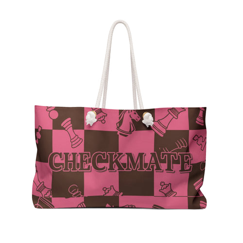 Checkmate Pink & Brown Weekender Bag — Chess Pattern Travel Tote